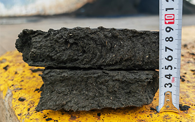 現(xiàn)場(chǎng)情況:現(xiàn)場(chǎng)污泥為生化污泥、初沉污泥和化學(xué)污泥,隨機(jī)比例混合處理處置,污泥濃度2.5%-3.5%,由于污泥混合比例隨機(jī),導(dǎo)致污泥濃度變化較快,產(chǎn)量不穩(wěn)定。脫水裝置4臺(tái)景津600㎡板框脫水機(jī)。其中一臺(tái)板框脫水機(jī)配備獨(dú)立調(diào)理罐(容積約160m3),現(xiàn)用氯化鐵(用量1.2%-1.5%)配合陽(yáng)離子pam(用量50ppm)調(diào)理污泥。單板進(jìn)泥量約為90m3。